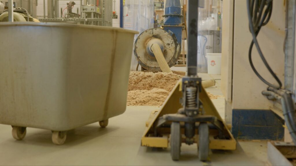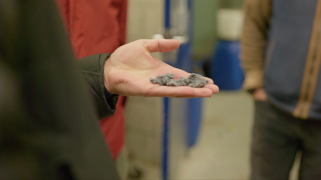 Importantly, this marks the transition into tangible output, demonstrating that difficult textile waste streams can be transformed into usable board material.
