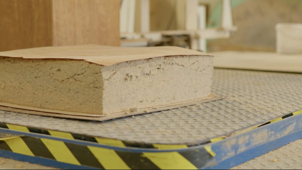 The project has progressed to pilot production with physical MDF-style boards successfully manufactured using fibre made from 30% non-rewearable textile waste to replace a proportion of virgin timber.