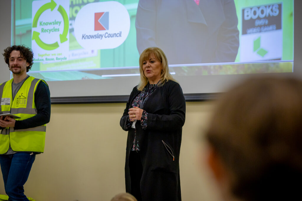 Supported by Cllr Shelley Powell, Knowsley’s Cabinet Member for Communities and Neighbourhoods, and joined by Knowsley Council’s Recycling Engagement Team, Grace Barlow and Marvin Critchley, Roberts Recycling Director Paul Roberts and Head of Marketing Lewis Webster delivered fun and informative assemblies highlighting the importance of recycling textiles across the borough and how young people can make a difference.